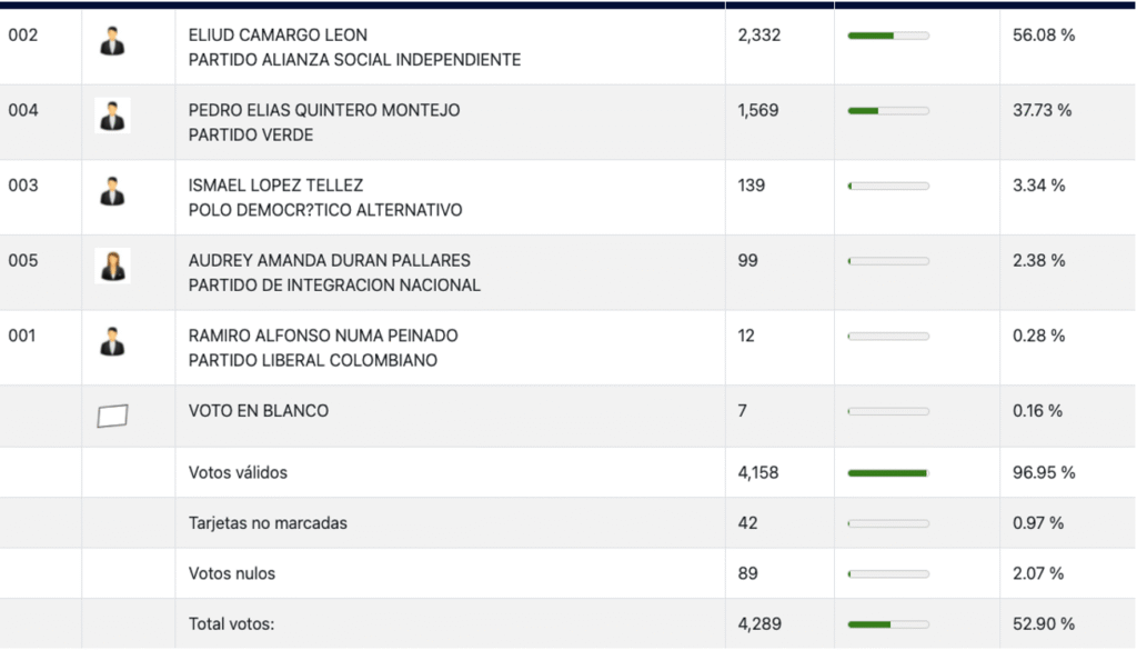 Previamente, en 2011, Pedro Elías también participó en las elecciones para la alcaldía de Teorama, cuando ocupó el segundo lugar con 1.569 votos.