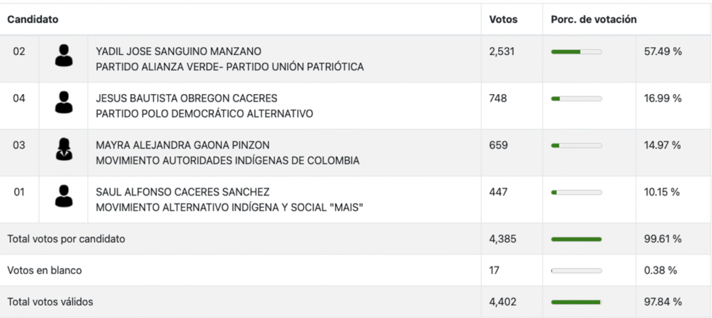 De acuerdo con la Registraduría, Pedro Elías y Mayra Gaona fueron candidatos en el 2015 para las alcaldías de Taorama y San Calixto en Norte de Santander por UP- Alianza Verde y AICO, respectivamente. Pedro Elías ocupó el tercer lugar, con una votación de 1.368 votos.