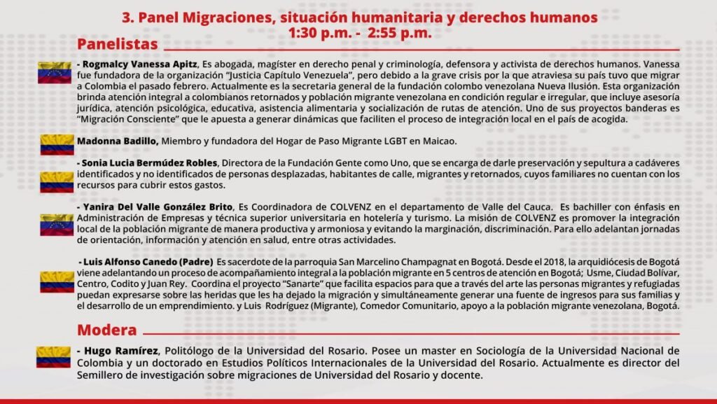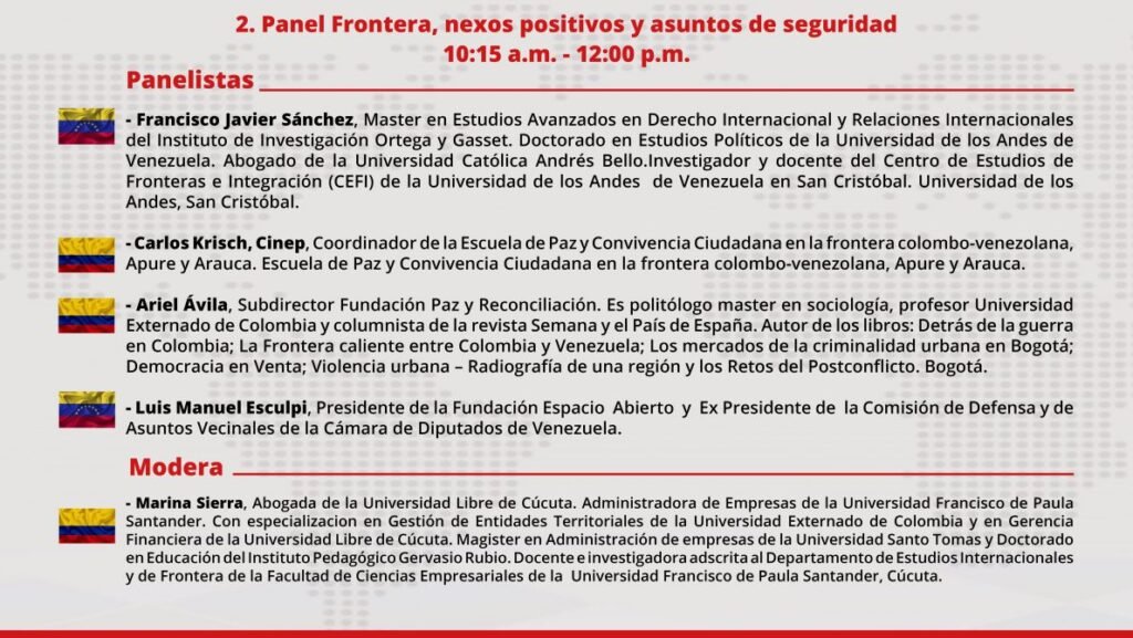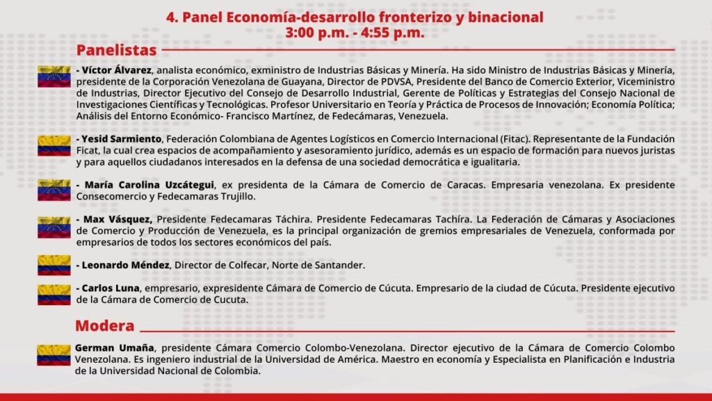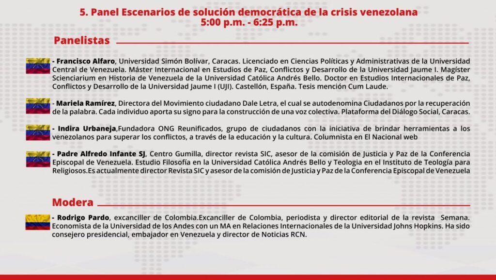 Cerca de 100 Organizaciones Sociales de Colombia, Venezuela, Estados Unidos y más de 200 personalidades, crearon la Convergencia Colombia-Venezuela (CCCV) para impulsar una solución negociada desde la diplomacia ciudadana. Esta es la programación del evento -día jueves 14 de noviembre- y que está abierto al público: