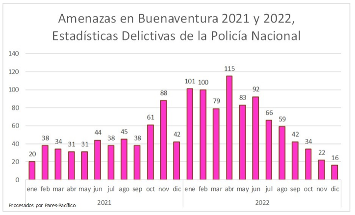 Si bien es importante mencionar que en muchos de estos delitos se pueden presentar subregistros reconociendo lo que implica para las comunidades poder denunciarlos, en las cifras registradas se refleja un salto positivo en los últimos cuatro meses del año 2022, los cuales corresponden a la llegada del nuevo Gobierno Nacional desde donde se está impulsando la Política de Paz Total, a la cual se sumaron varios de los grupos que hacen presencia en el territorio urbano y rural de Buenaventura. Avances hay en lo urbano, pero no en lo rural, es una paz parcial y diferenciada.