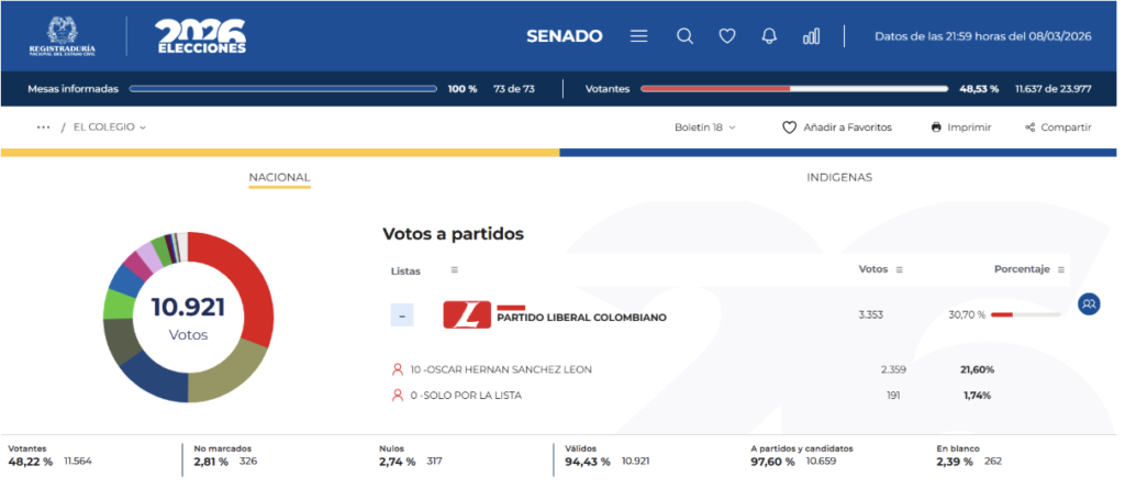 Por su parte, Óscar Hernán Sánchez sí logró consolidar un escaño en el senado y, además, obtuvo la mayor votación de los aspirantes a Senado en el municipio.