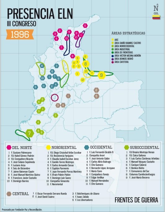 Para ese entonces el ELN contaba con aproximadamente cincuenta frentes guerrilleros, estructuras urbanas en las principales ciudades del país y todo un entramado de estructuras especializadas y vínculos diversos con el “mundo guerrillero”, además aposto fuerte por la “Unidad de las Guerrillas”.