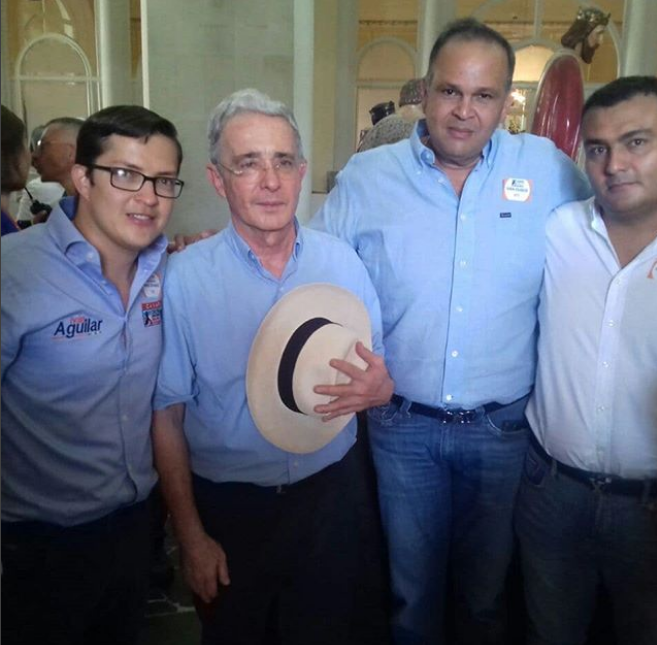 El Ñeñe Hernández creó un círculo social entre políticos y miembros de la fuerza pública, algunos de ellos cuestionados por su actuar dentro de algunas instituciones y otros por el silencio que han promovido tras conocerse las relaciones del Ñeñe Hernández con Marquitos Figueroa. Aquí posa con el presidente (en ese entonces candidato a la presidencia) Iván Duque y su esposa María Juliana.