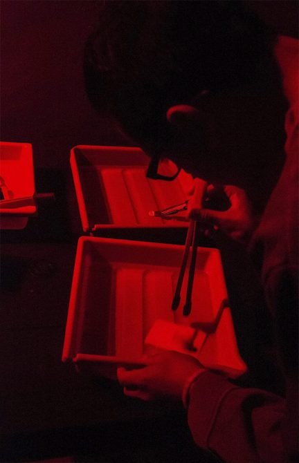 “La emoción cuando empezamos a ver que el papel ya se revelaba las fotografías que queríamos lograr, era una sensación muy extraña casi como irreal. Pues, uno ahí sujetando su primera foto, parece bobo, pero cuando uno camella en el proceso tiene resto de sentido”, le resultaba una paradoja sentir libertad, estando adentro.