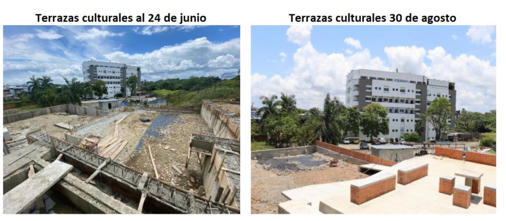 De acuerdo a esto, el avance desde el 24 de junio ha sido muy poco, sin embargo, cabe resaltar que el grueso de la obra es la construcción de las terrazas, de las cuales se han logrado culminar dos. En cuanto al último punto de instalación de ventanas y pinturas, es un proceso ágil y sólo se puede hacer una vez culminada toda la construcción para evitar daños.