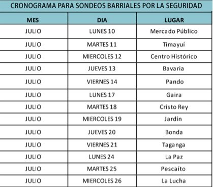 Comerciantes, y habitantes del sector recibieron con agrado el Sondeo, ya que través de esta herramienta pueden manifestar sus opiniones acerca de la seguridad; como lo expreso Carlos Urdaneta comerciante en el mercado público, ”Me parece excelente que se haga esta encuesta porque, la ciudad necesita que la seguridad mejore, y no ocurran más delitos y que la policía y las demás instituciones estén más comprometidas en mejorar la seguridad, para uno sentirse más tranquilo”.