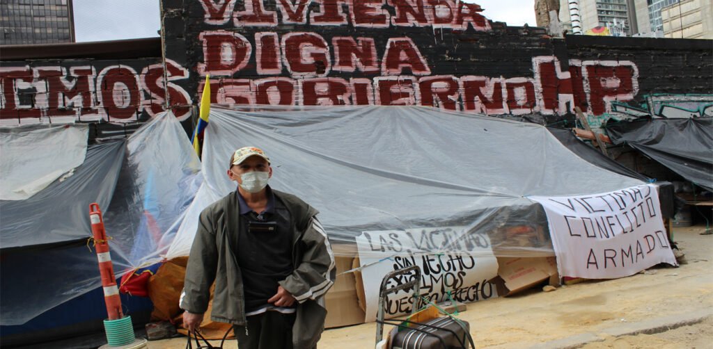 Desde hace aproximadamente un mes un grupo de casi 15 personas – que al principio eran alrededor de 100- permanece al frente del Ministerio de Vivienda exigiendo que se les respete su derecho a la vivienda digna, pues estas familias son la radiografía de una de las problemáticas que la pandemia ha acentuado: las condiciones de habitabilidad, pues, vale la pena señalar, que durante este año el DANE informó que para el 2018 de los casi 50 millones de personas que habitan en Colombia, 18.2 millones no cuentan con vivienda digna.
