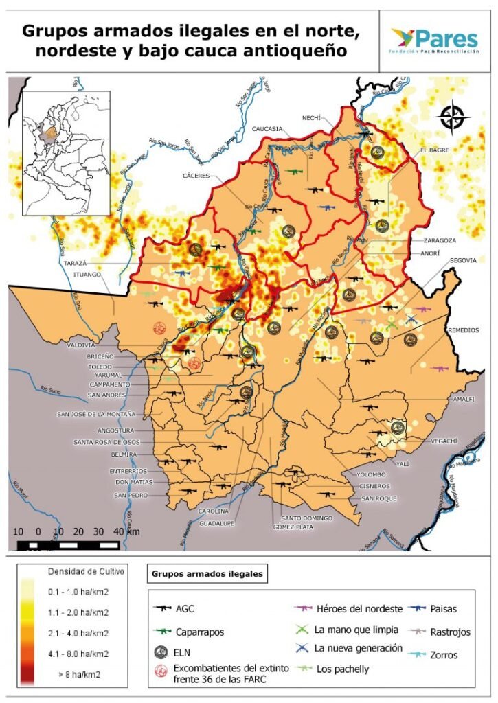 El Bajo Cauca es una de las 9 subregiones del departamento de Antioquia, está conformada por 6 municipios: Caucasia, Cáceres, Tarazá, El Bagre, Nechí y Zaragoza. Todos son municipios priorizados en el acuerdo de paz debido a su afectación por el conflicto armado. Por ejemplo, Tarazá, Cáceres y Caucasia se encuentran dentro de los 30 municipios postFARC que han presentado mayor aumento de homicidios entre 2017 y agosto de 2018.